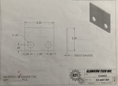 GLAMAZON UNIVERSAL 11 GA FLAT BRACKET FOR EXHAUST & MUFFLER